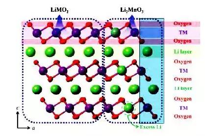 下圖為聚合物鋰電池富鋰三元正極材料xLi2MnO3·(1-x)LiMn1/3Ni1/3Co1/3O2(0.1≤x≤0.5)的結(jié)構(gòu)示意圖,由于其特殊的結(jié)構(gòu),可脫出更多的鋰,具有寬電壓窗口和高比容的優(yōu)勢。