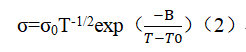 VTF型能更好地描述聚合物電解質(zhì)的離子導電行為,其可用公式(2)表示: