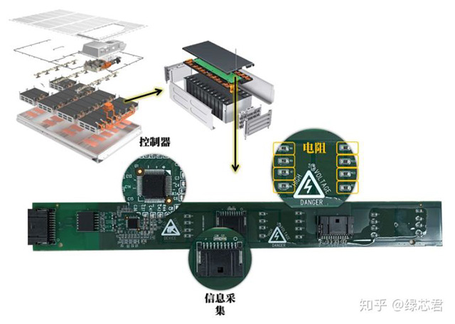 被動均衡電路的優(yōu)點是結(jié)構(gòu)簡單,布局成本低,硬件實現(xiàn)簡單等,在電動汽車上廣泛應(yīng)用。說白了就是在模組控制電路板上設(shè)計很多的電阻,一個電阻對應(yīng)一節(jié)電芯。當(dāng)某節(jié)電芯的SOC較高時,就主動將能量通過電阻發(fā)熱,耗散掉。