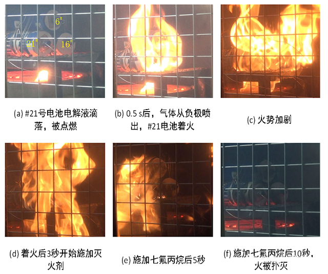 圖10. 七氟丙烷滅火劑對鈦酸鋰電池模組的滅火過程